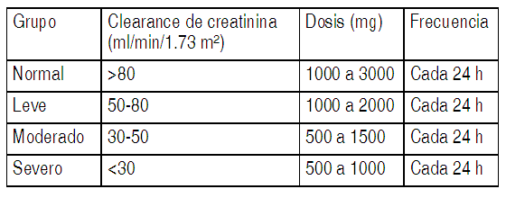 DOSIS: Los comprimidos deben tomarse enteros; no deben ser masticados, rotos, ni triturados. El tratamiento debe iniciarse con una dosis de 1000 mg 1 vez por día. La dosis diaria puede ser ajustada con aumentos de 1000 mg cada 2 semanas hasta una dosis diaria máxima recomendada de 3000 mg. Pacientes adultos con deterioro de la función renal: Se debe individualizar la dosificación de levetiracetam liberación prolongada de acuerdo con el estado de la función renal del paciente. Ver Tabla