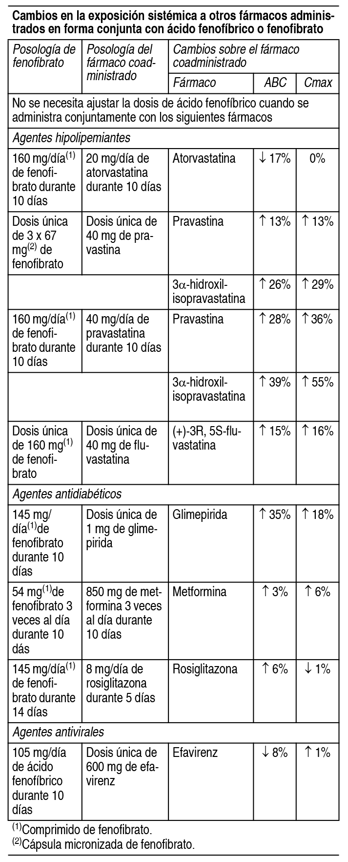 COMPOSICION: Cada comprimido contiene: Ácido Fenofíbrico 105.0 mg. Excipientes: Povidona, Crospovidona, Estearato de Magnesio, Celulosa Microcristalina, Oxido Férrico Amarillo c.s.p. 1 comprimido. ACCION: Hipolipemiante. Agonista del receptor α activado por proliferadores de peroxisomas (PPARα). Código ATC: C10AB. INDICACIONES: Tratamiento de la hipertrigliceridemia severa. Tratamiento de la hipercolesterolemia primaria o la dislipemia mixta. DOSIS: Los pacientes deben realizar una dieta baja en lípidos antes de comenzar el tratamiento con ácido fenofíbrico y deben continuar con la misma durante el tratamiento. Se deben controlar periódicamente los niveles séricos de lípidos con dieta apropiada, ejercicio, descenso de peso y control de ciertas patologías que contribuyen a la hiperlipidemia como la diabetes mellitus y el hipotiroidismo. Se debe discontinuar el tratamiento con medicamentos que se conoce exacerban la hipertrigliceridemia (como β-bloqueantes, tiazidas, estrógenos) o, si es posible, cambiarlos por otros; asimismo, se debe tratar la ingesta excesiva de alcohol antes de considerar el tratamiento con hipolipemiantes. La determinación de los niveles séricos de lípidos se debe realizar durante el inicio de la terapia con el fin de establecer la menor dosis efectiva. El tratamiento se debe discontinuar en pacientes que no obtienen una respuesta adecuada luego de 2 meses de tratamiento con la dosis máxima recomendada de 105 mg/día. Se debe considerar la posibilidad de reducir la dosis de ácido fenofíbrico si los niveles de lípidos caen significativamente por debajo del rango objetivo. Hipertrigliceridemia severa: la dosis inicial es de 35 a 105 mg/día. En función de la respuesta del paciente y luego de la determinación de los niveles de lípidos, la dosis puede ajustarse cada 4 u 8 semanas. La dosis máxima recomendada es de 105 mg/día. Hipercolesterolemia primaria o dislipemia mixta: la dosis recomendada es 105 mg/día. Poblaciones especiales: Insuficiencia renal: en pacientes con insuficiencia renal leve a moderada, el tratamiento debe iniciarse con la dosis de 35 mg/día y debe aumentarse únicamente luego de la evaluación de los efectos sobre la función renal y los niveles de lípidos. En pacientes con insuficiencia renal severa, debe evitarse el uso de ácido fenofíbrico. Pacientes de edad avanzada: la elección de la dosis en pacientes de edad avanzada debe realizarse teniendo en cuenta la función renal. Modo de administración: Los comprimidos pueden administrarse independientemente de las comidas. CONTRAINDICACIONES: Hipersensibilidad a ácido fenofíbrico, a fenofibrato o a cualquiera de los componentes del producto. Pacientes con insuficiencia renal severa, incluyendo pacientes que reciben diálisis. Pacientes con enfermedad hepática activa, incluyendo cirrosis biliar primaria y anormalidades funcionales hepáticas persistentes e inexplicables. Colecistopatía preexistente. Lactancia. ADVERTENCIAS: Mortalidad y morbilidad por enfermedad coronaria: el efecto de ácido fenofíbrico sobre la mortalidad y morbilidad por enfermedad coronaria y sobre la mortalidad no cardiovascular no ha sido establecido. En virtud de las semejanzas entre ácido fenofíbrico, fenofibrato, clofibrato y gemfibrozil, los hallazgos de los estudios clínicos aleatorizados, controlados con placebo, con estos fibratos pueden tenerse en cuenta para este producto. En un estudio clínico aleatorizado, controlado con placebo, de 5 años de duración, en pacientes con diabetes mellitus tipo II, el tratamiento combinado de una estatina y fenofibrato mostró una reducción relativa no significativa del 8% en el criterio de las principales reacciones adversas cardiovasculares, en comparación con la monoterapia con estatina. En otro estudio clínico aleatorizado, controlado con placebo, de 5 años de duración, en pacientes con diabetes mellitus tipo II tratados con fenofibrato se observó una reducción relativa no significativa del 11% en el criterio principal de valoración de los eventos coronarios y una reducción significativa del 11% en el criterio de valoración secundario de los eventos cardiovasculares totales. Asimismo, se observó un aumento no significativo en la mortalidad total y por enfermedad coronaria, en el grupo tratado con fenofibrato en comparación con el grupo placebo. En un estudio clínico realizado en pacientes post infarto de miocardio, tratados durante 5 años con clofibrato, no se encontraron diferencias en la mortalidad entre el grupo clofibrato y el grupo placebo. Sin embargo, se observó una diferencia entre ambos grupos en la incidencia de casos de colelitiasis y colecistitis que requirieron cirugía (3.0% vs. 1.8%). En un estudio clínico realizado en sujetos sin enfermedad coronaria conocida tratados durante 5 años con placebo o con clofibrato y seguidos durante un período adicional de 1 año más, se observó una mortalidad por cualquier causa ajustada por edad, superior y estadísticamente significativa en el grupo tratado con clofibrato en comparación con el grupo placebo (5.70% vs. 3.96%, p=<0.01). El exceso de mortalidad se debió a un incremento del 33% en causas no cardiovasculares, incluyendo tumores malignos, complicaciones post-colecistectomía y pancreatitis, confirmándose de esta manera un mayor riesgo de desarrollo de colecistopatía en los pacientes tratados con clofibrato. Músculo-esquelético: el tratamiento con fibratos aumenta el riesgo de miopatía y se ha asociado a rabdomiolisis. El riesgo de toxicidad muscular seria aumenta en los pacientes de edad avanzada, pacientes con diabetes, pacientes con insuficiencia renal o pacientes con hipotiroidismo. Los datos derivados de estudios observacionales sugieren que el riesgo de rabdomiolisis es mayor cuando los fibratos se administran junto a una estatina (con una tasa mayor observada en el uso combinado de gemfibrozil y estatinas en comparación con fenofibratos y estatinas)