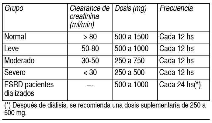 DOSIS: Adultos: la dosis inicial recomendada es de 500 mg cada 12 horas por vía oral. La dosis puede incrementarse cada 2 semanas a razón de 1000 mg/día, hasta alcanzar la dosis máxima permitida de 3000 mg diarios (1500 mg cada 12 horas por vía oral). Niños y adolescentes (hasta 15 años): se recomienda una dosis de 20 mg/kg/día (10 mg/kg cada 12 horas por vía oral). La dosis puede incrementarse cada 2 semanas a razón de 20 mg/kg/día, hasta alcanzar la dosis máxima permitida de 60 mg/kg/día (30 mg/kg cada 12 horas por vía oral). Molival debe ingerirse oralmente, con las comidas o en ayunas. Pacientes con deterioro de la función renal: La dosis de Molival debe individualizarse de acuerdo al estado de la función renal del paciente. Las dosis recomendadas y los ajustes para las dosis se muestran en la tabla adjunta. Para utilizar esta tabla de dosis se necesita el clearance de creatinina del paciente (CLcr) en ml/min estimado. El CLcr en ml/min puede estimarse de la determinación de la creatinina sérica (mg/dl) usando la siguiente fórmula: Ver Tabla Régimen de ajuste de dosis para pacientes con deterioro de la función renal: Ver Tabla
